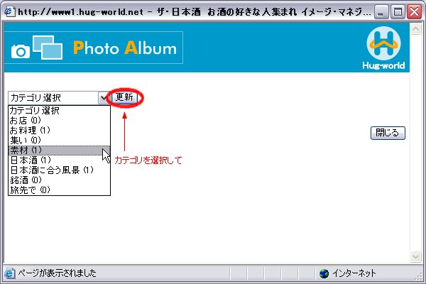 読み込みたい画像のカテゴリを選択し、更新をクリックします。