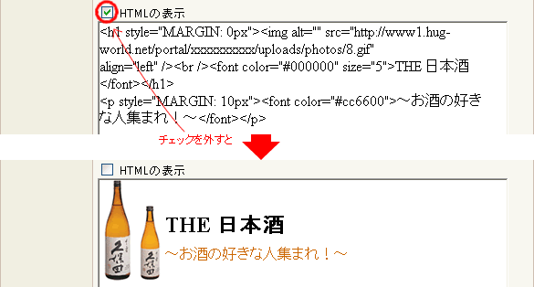 「HTMLの表示」のチェックを外し、元の画面に戻ります。