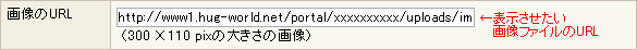 あらかじめタイトルヘッダ用の画像をフォトアルバムやサイト画像倉庫に登録しておけば、ここで画像ファイルのURLを入力することによりタイトルヘッダとして表示させることができます。