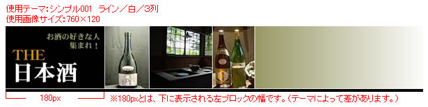 サイト名、ロゴ等を配置して作られたタイトルヘッダ用の画像をご用意されている場合、その画像ファイルをタイトルヘッダとして表示させることができます。 テーマによって、レイアウトを崩さずに表示できる画像サイズに差があります。