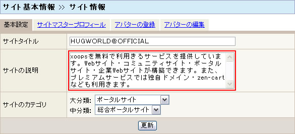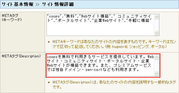 ここで設定した内容はサイトの説明文としてmetaタグのdescriptionに埋め込まれます。